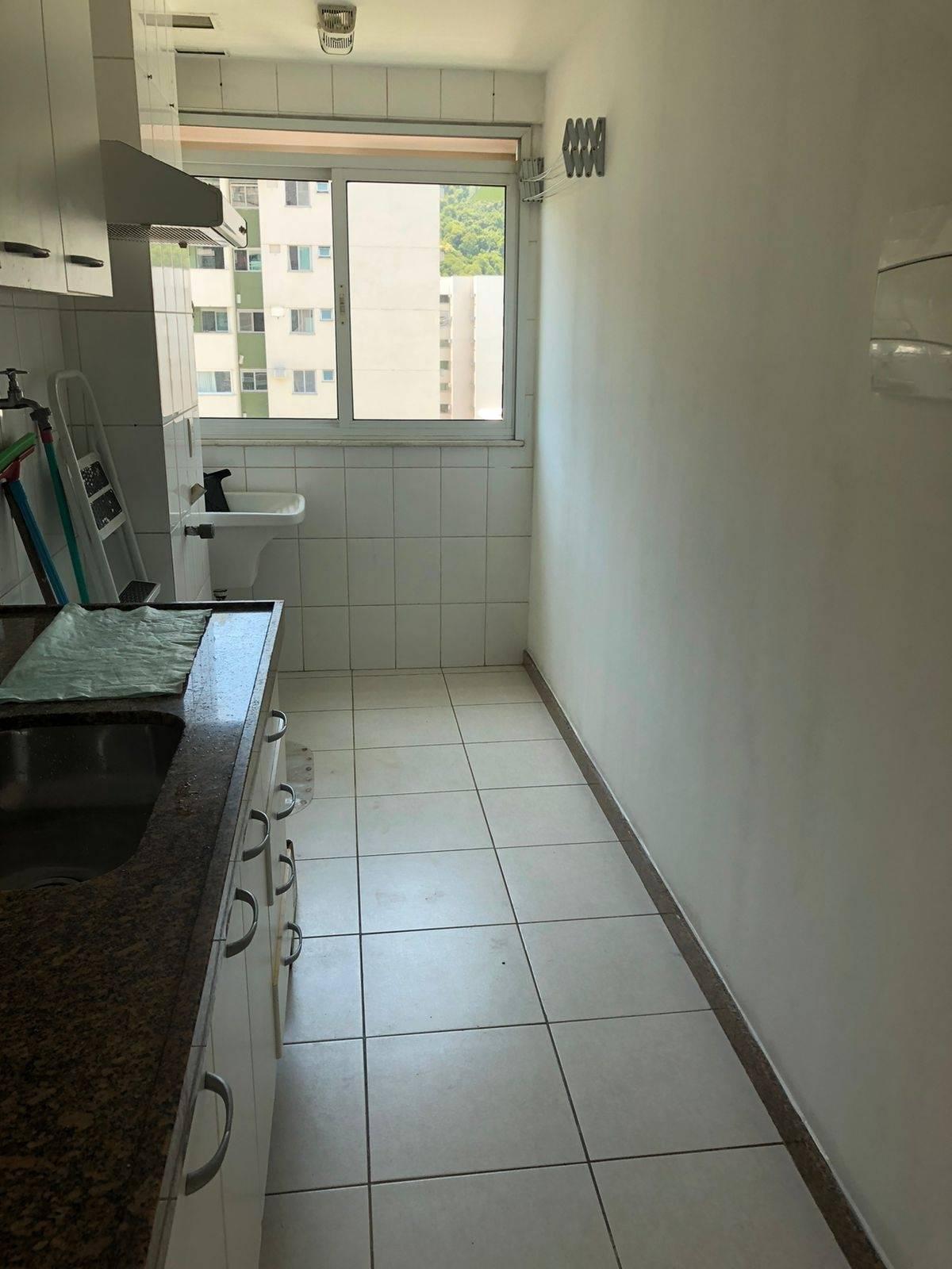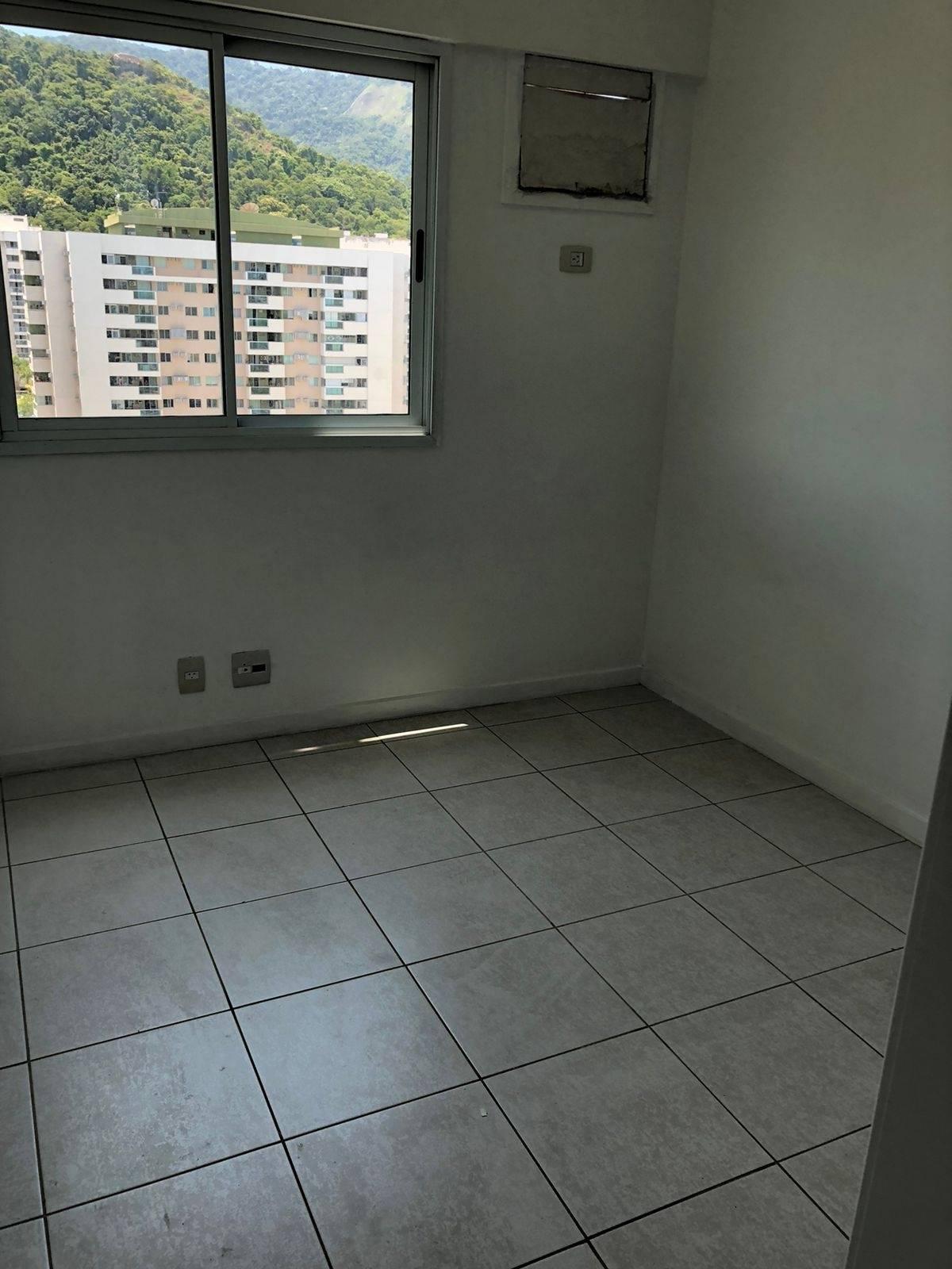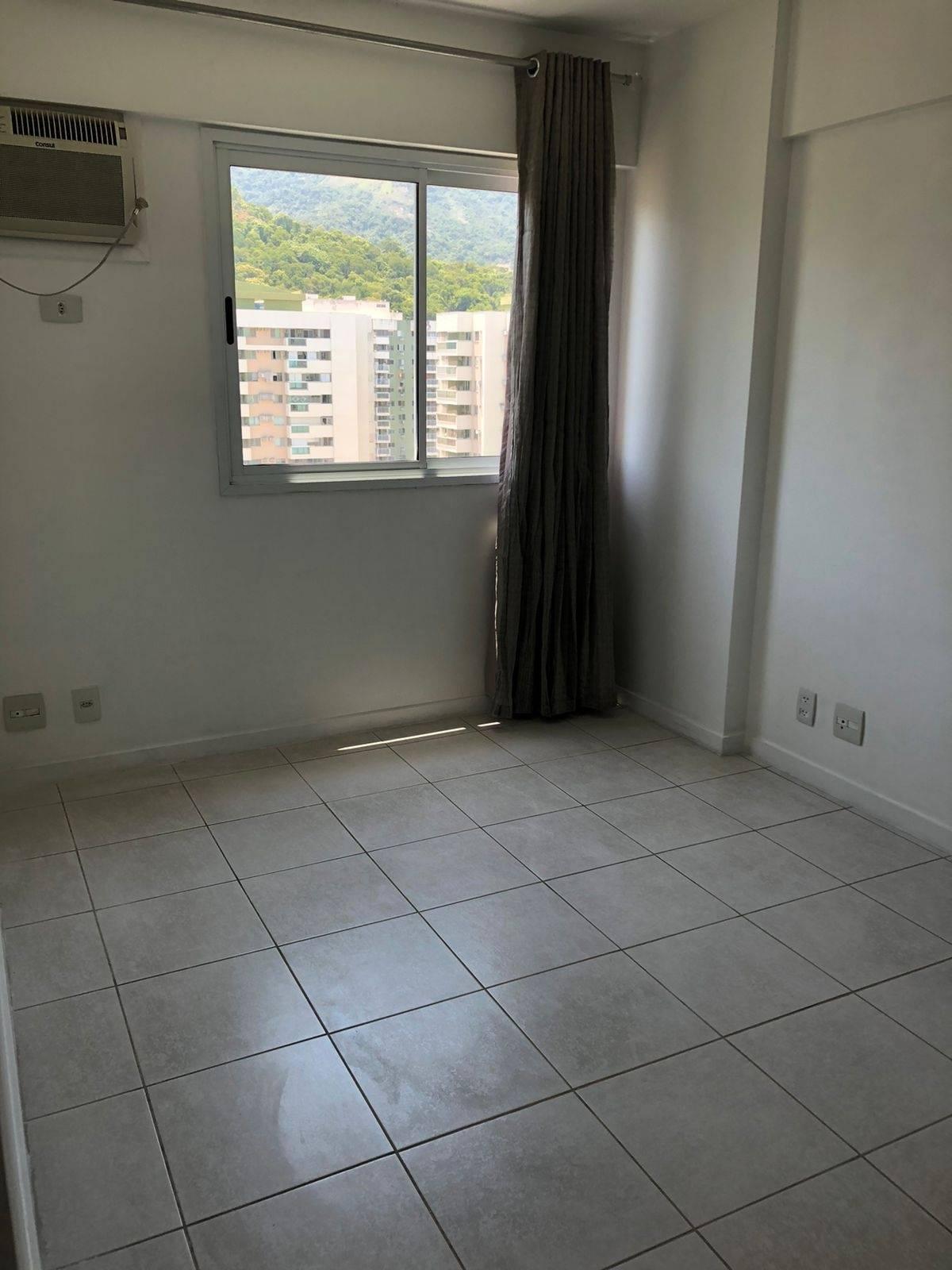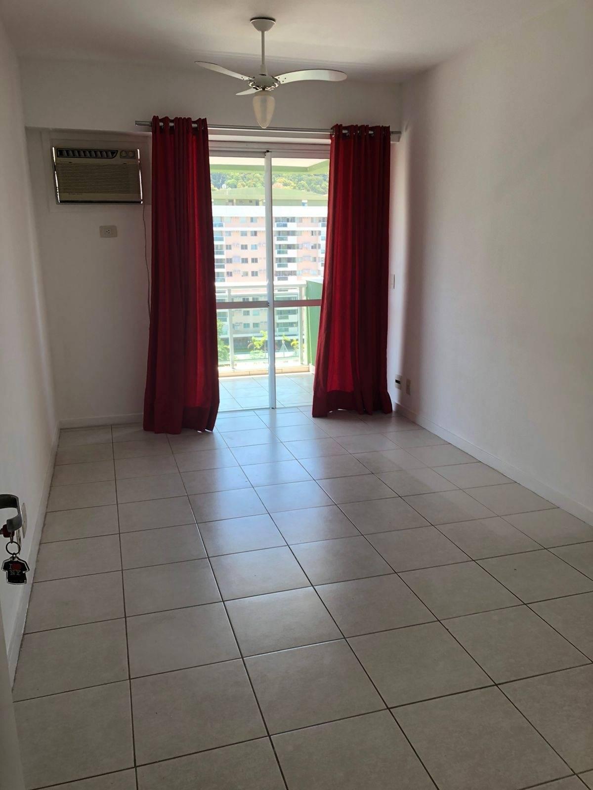 São 68m² com sala em 2 ambientes, linda varanda, 2 quartos sendo 1 suíte, banheiro social e cozinha planejada com área de serviço. Piso frio. Armários. 2 vagas de garagem. Condomínio com lazer super completo e portaria com segurança 24 horas localizado ao lado do Riocentro.