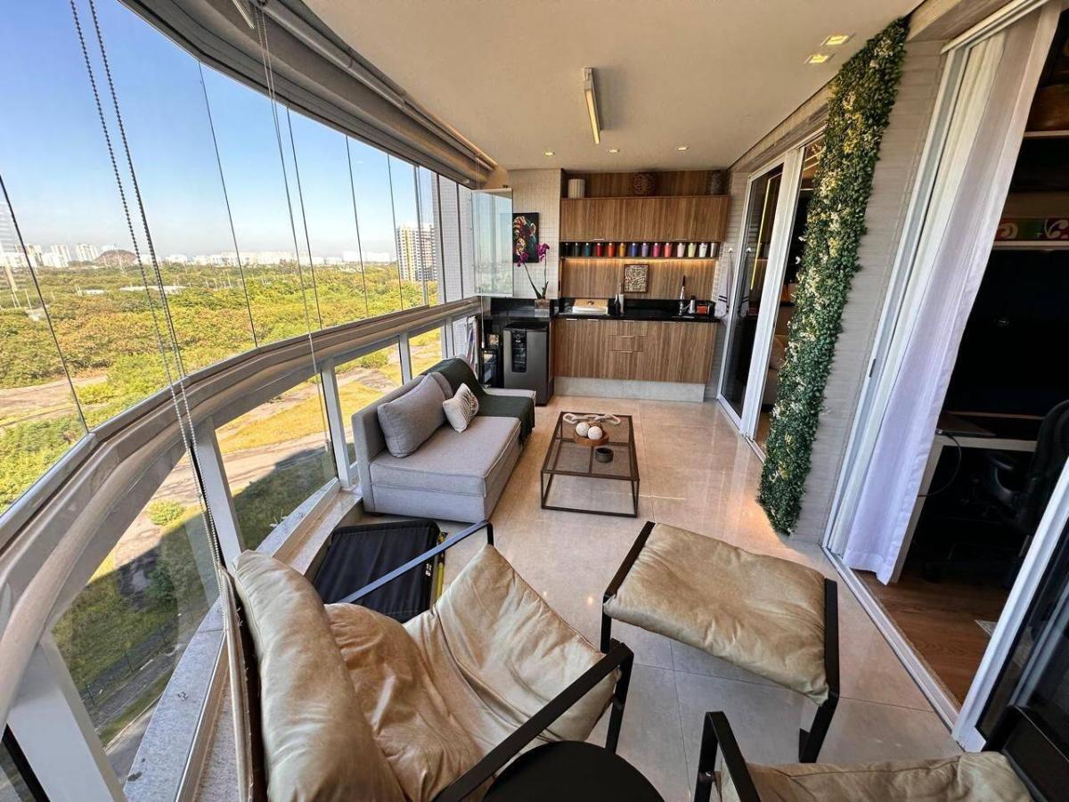 Maravilhoso apartamento em andar alto semimobiliado com alto padrão de acabamento com vista para a lagoa em condomínio em localização privilegiada na Barra da Tijuca. São 85m² com ampla sala, linda varanda gourmet com cortina de vidro, 2 quartos sendo 1 suíte, banheiro social e cozinha planejada com área de serviço. Sol da manhã. Piso porcelanato. Muitos armários. Ar condicionado Split. 1 vaga de garagem. Condomínio com lazer de resort, parque e portaria com segurança 24 horas.