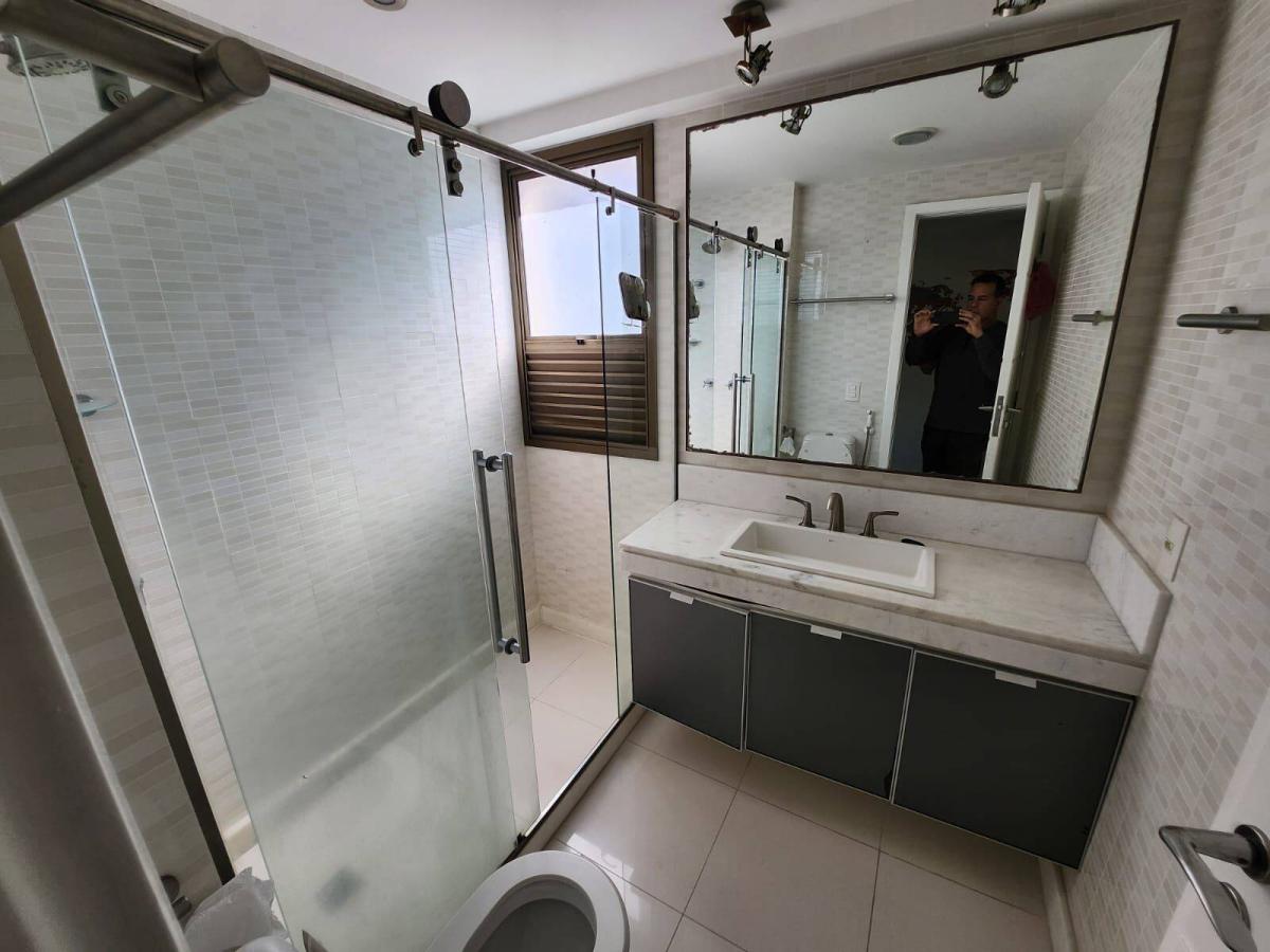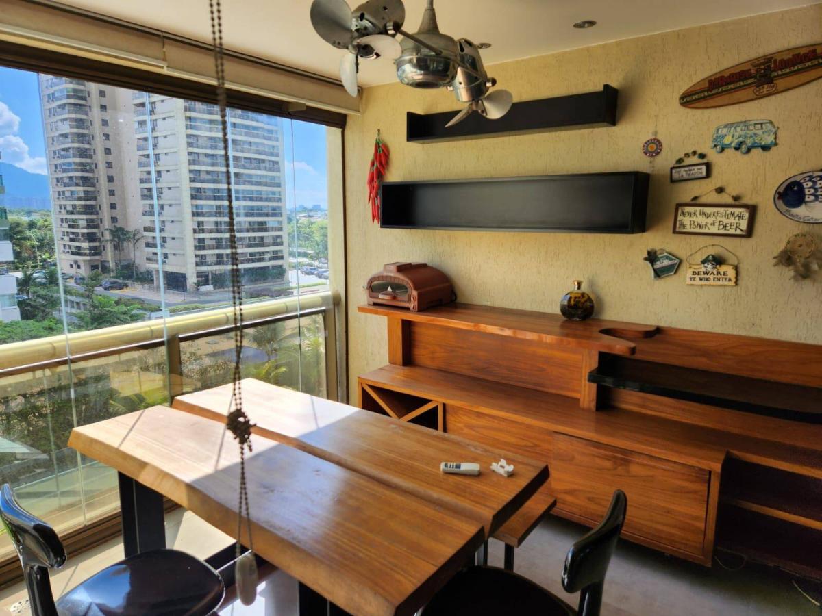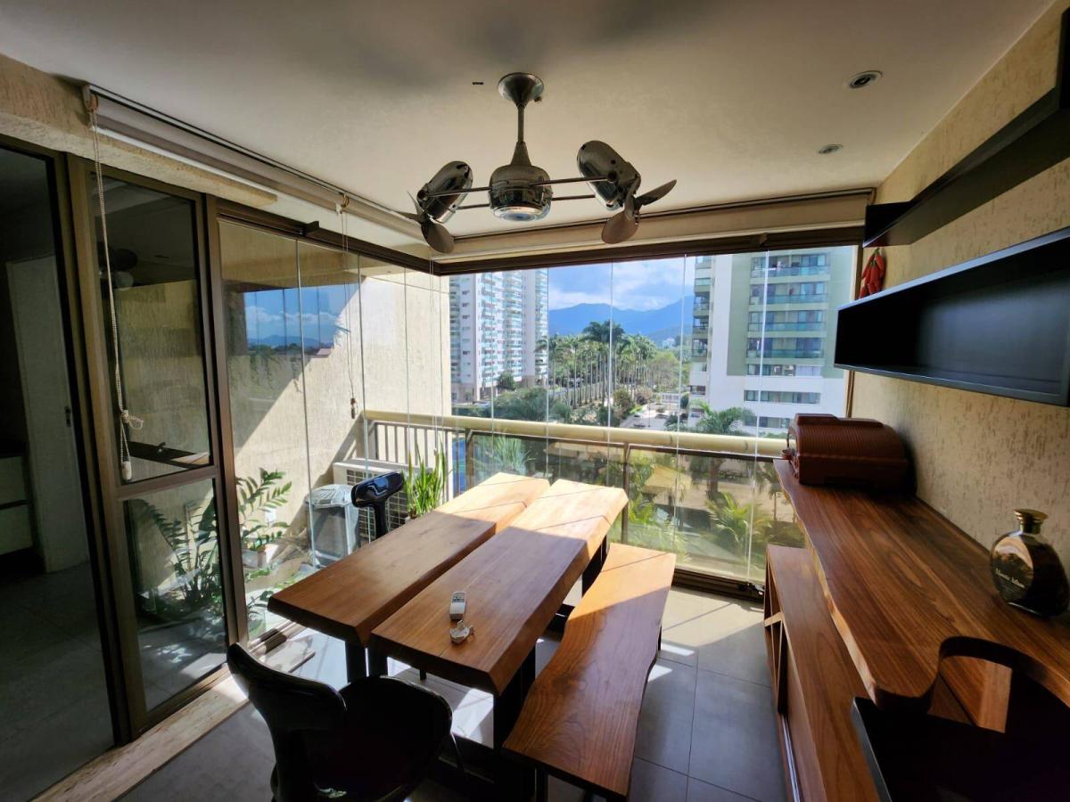 Maravilhoso apartamento em andar baixo com alto padrão de acabamento e 100% mobiliado com vista mar em condomínio em localização privilegiada na Barra da Tijuca. São 261m² com ampla sala em 3 ambientes, linda varanda com cortina de vidro, 3 ótimas suítes, cozinha planejada com copa, área de serviço e dependência completa. Sol da manhã. Armários. Ar condicionado Split. 4 vagas de garagem. Condomínio com lazer super completo, ônibus, balsa para a praia e portaria com segurança 24 horas.