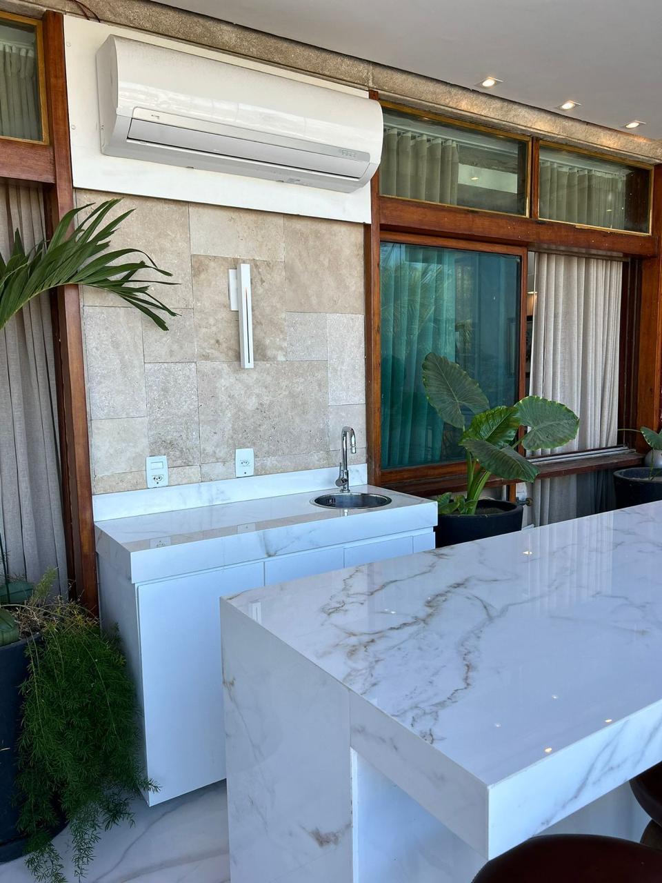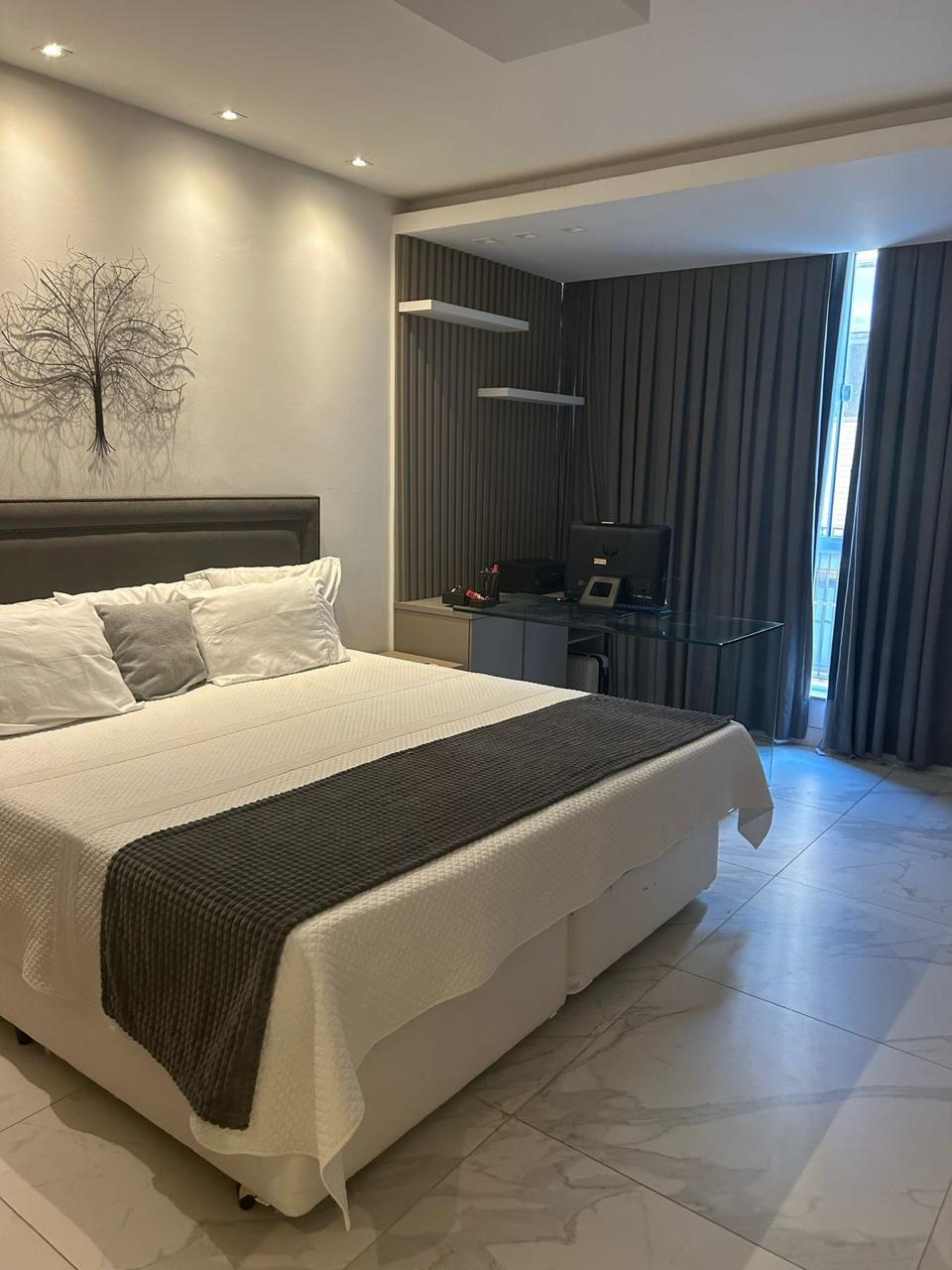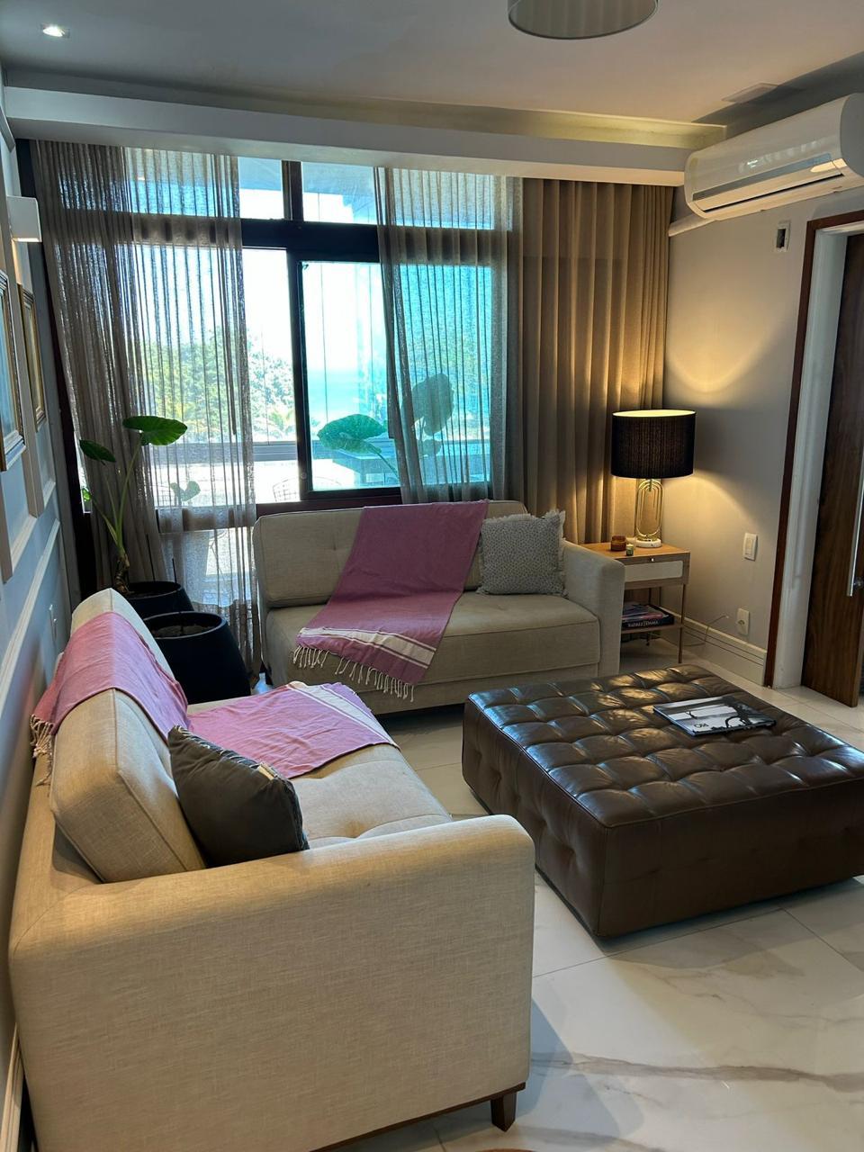 Lindo apartamento frontal mar, finamente reformado e decorado por arquiteto, para venda e locação no posto 3 da Praia da Barra da Tijuca, possui 250m², composto de 3 suítes com móveis planejados, suíte máster com banheira, banheiro social, lavabo, sala com 3 ambientes, iluminação indireta, varanda envidraçada com bancada Dekton e jardim vertical, sonorização nos ambientes, ar condicionado em toda a casa, tomadas com automatização, cozinha, área de serviço com 2 quartos, 4 vagas de garagem. Revestimentos de fino acabamento como Porcelanato e Mármore Travertino. Apartamento todo mobiliado.