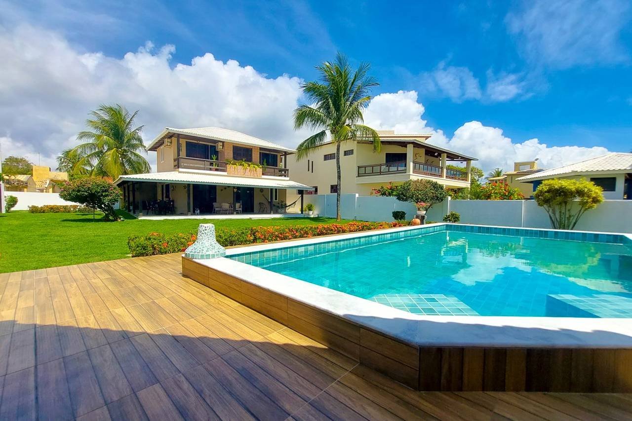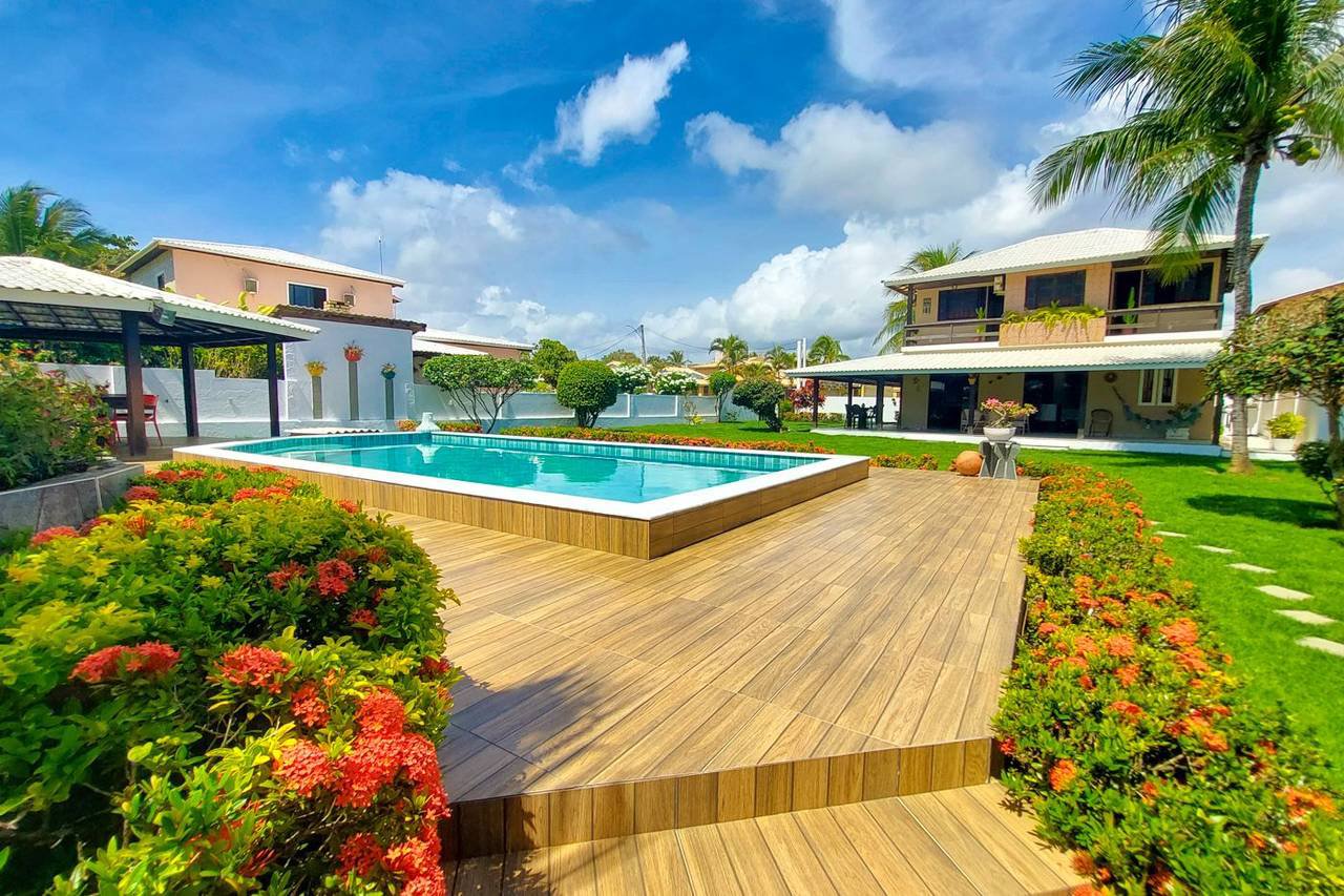 Além disso, a localização é muito privilegiada, pois fica próxima ao clube do condomínio, onde as crianças podem brincar com total segurança. A casa não tem vizinhos na frente, o que proporciona uma melhor visão do clube e permite que a brisa do mar e o canto dos pássaros sejam a trilha sonora diária.