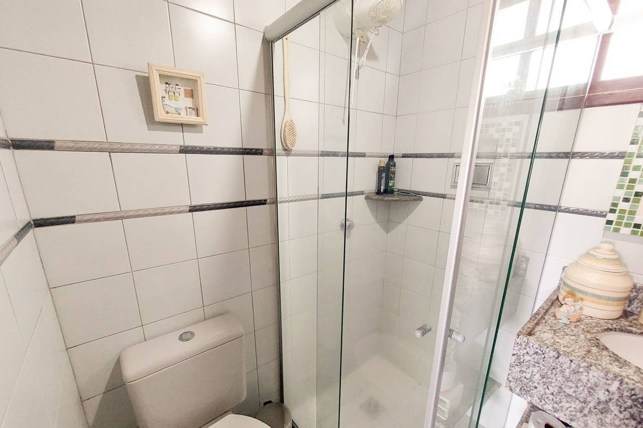No térreo, há uma sala de estar, TV e jantar integradas, cozinha e despensa, um banheiro social, um quarto, uma suíte como dependência e uma área de serviço. No primeiro andar, há três quartos, sendo uma suíte, todos com varanda, além de um banheiro social.