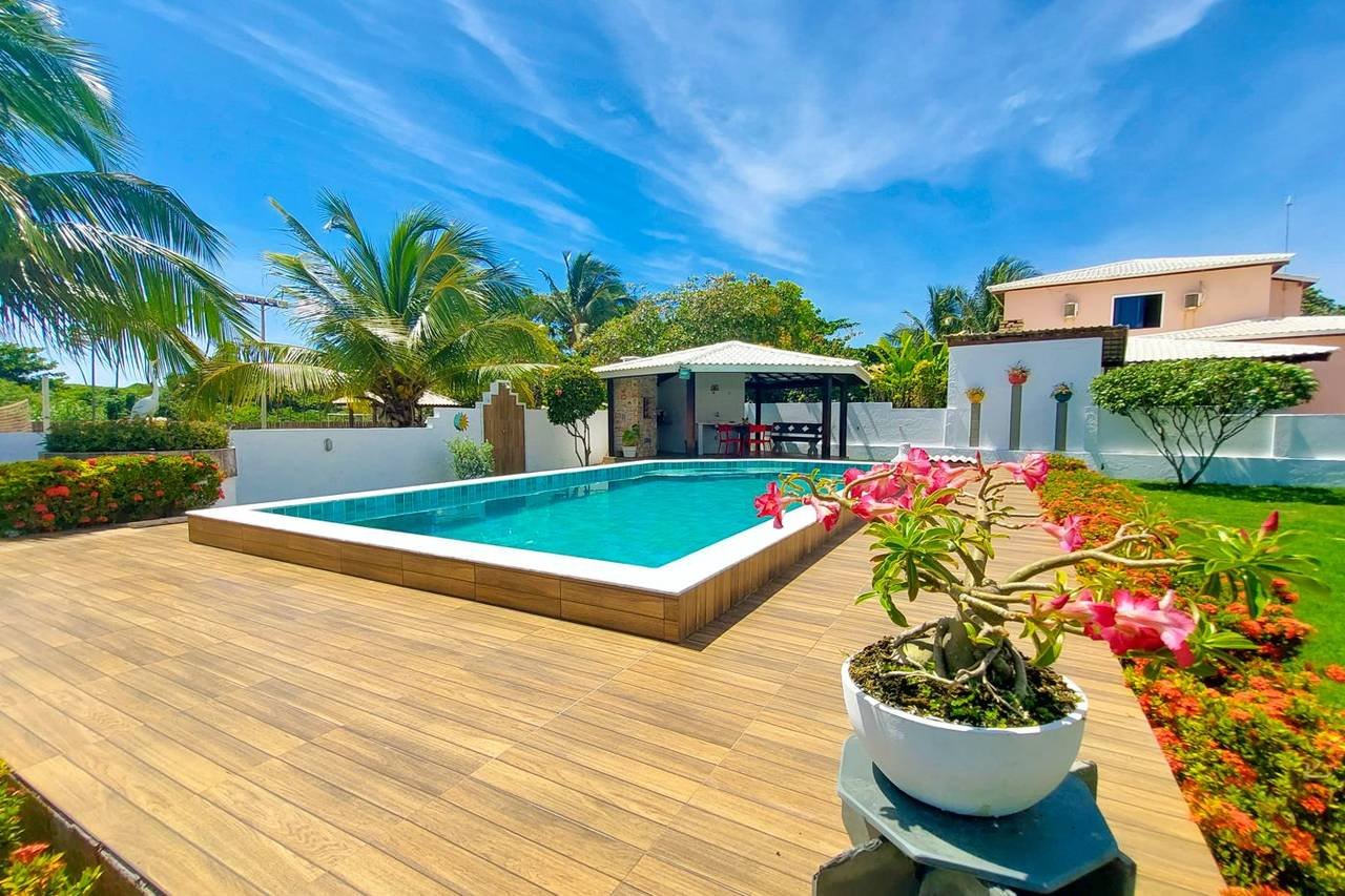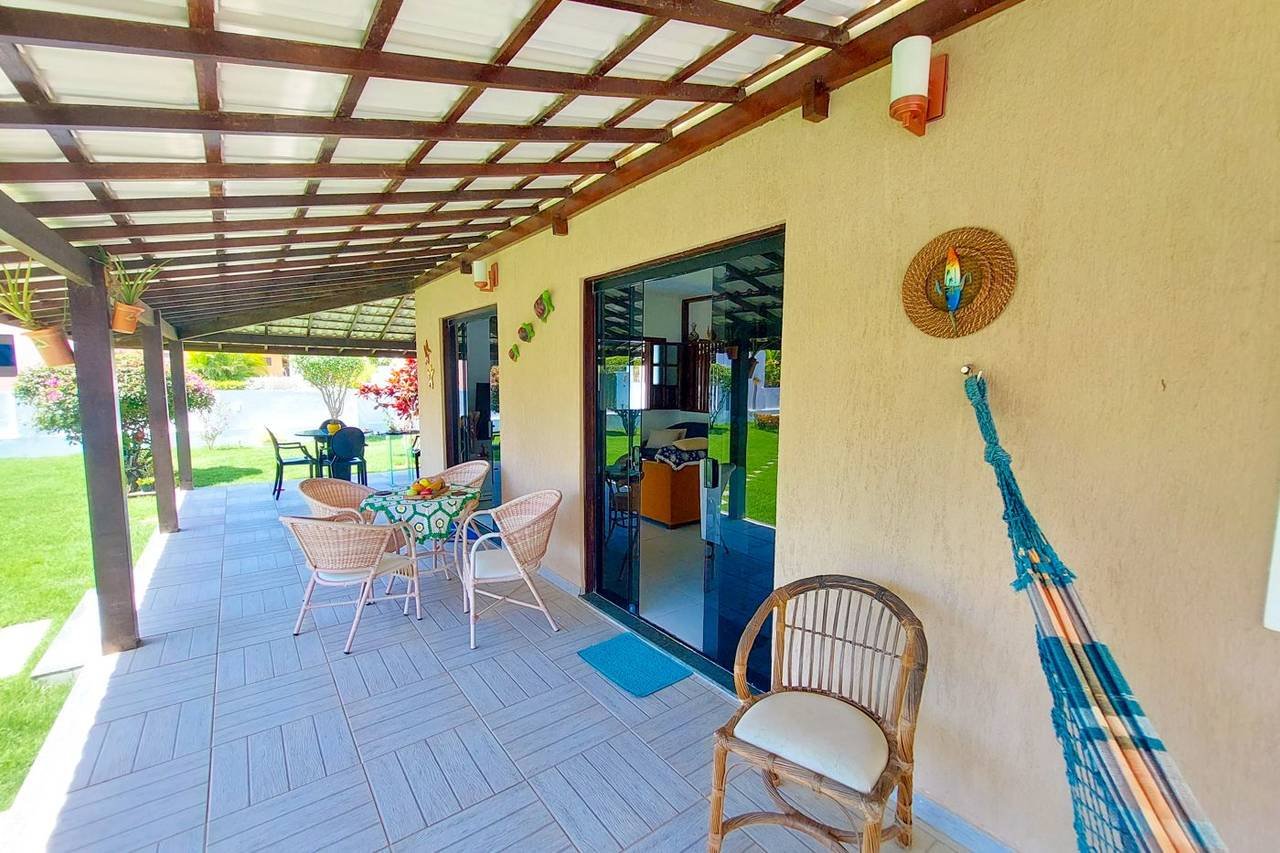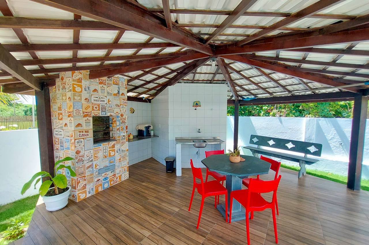 Localizada no condomínio Aldeias do Jacuípe, esta encantadora casa duplex possui uma varanda bem ventilada, perfeita para relaxar na rede e ler um bom livro. As crianças podem trazer seus jogos e brincar na varanda ou na ampla área verde, além de desfrutar dos dias ensolarados na bela piscina. Não se preocupe com o churrasco, pois ele já está garantido no quiosque com churrasqueira integrado à piscina.