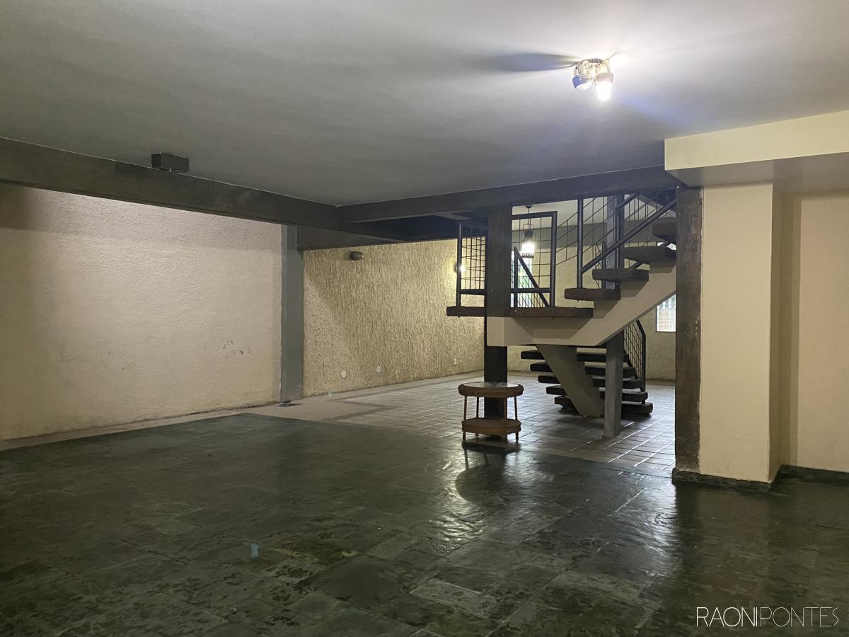 O primeiro andar apresenta um espaçoso salão de aproximadamente 50 metros quadrados, um lavabo, uma suíte, área de serviço, um bar, um encantador jardim e garagem para dois carros, oferecendo uma entrada acolhedora e funcional.