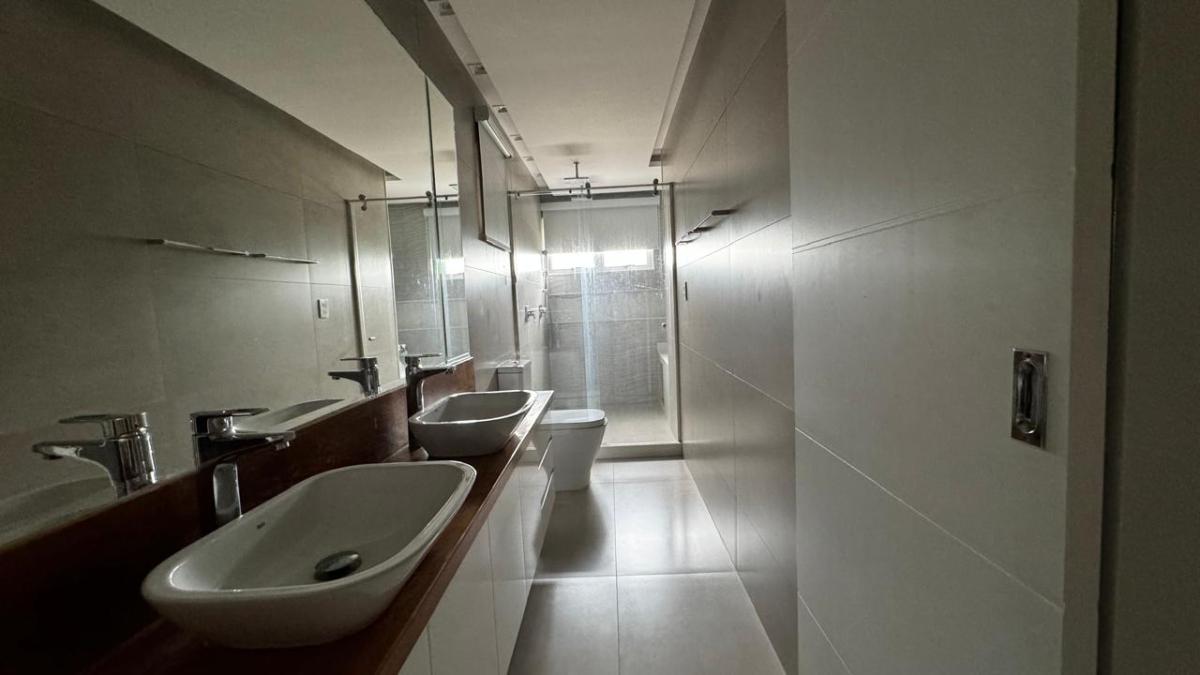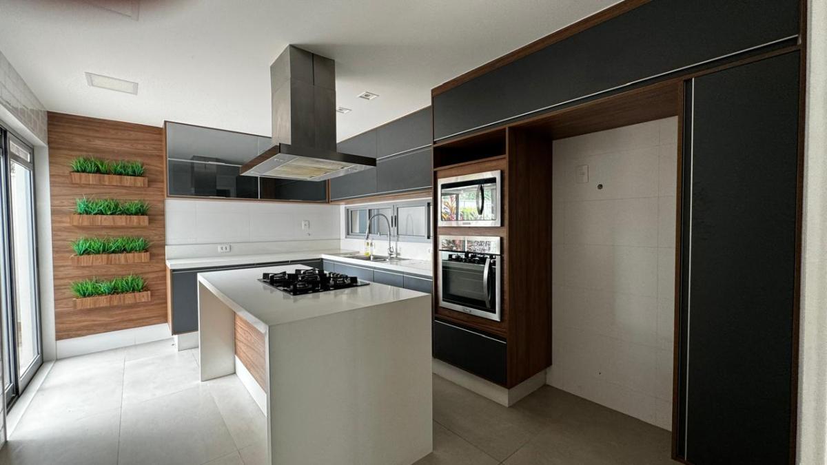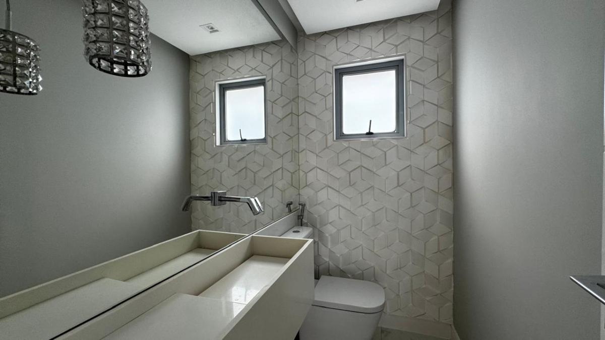 O imóvel tem 3 quartos, sendo 3 suítes, possui 5 banheiros, 1 sala e 2 vagas de garagem.
