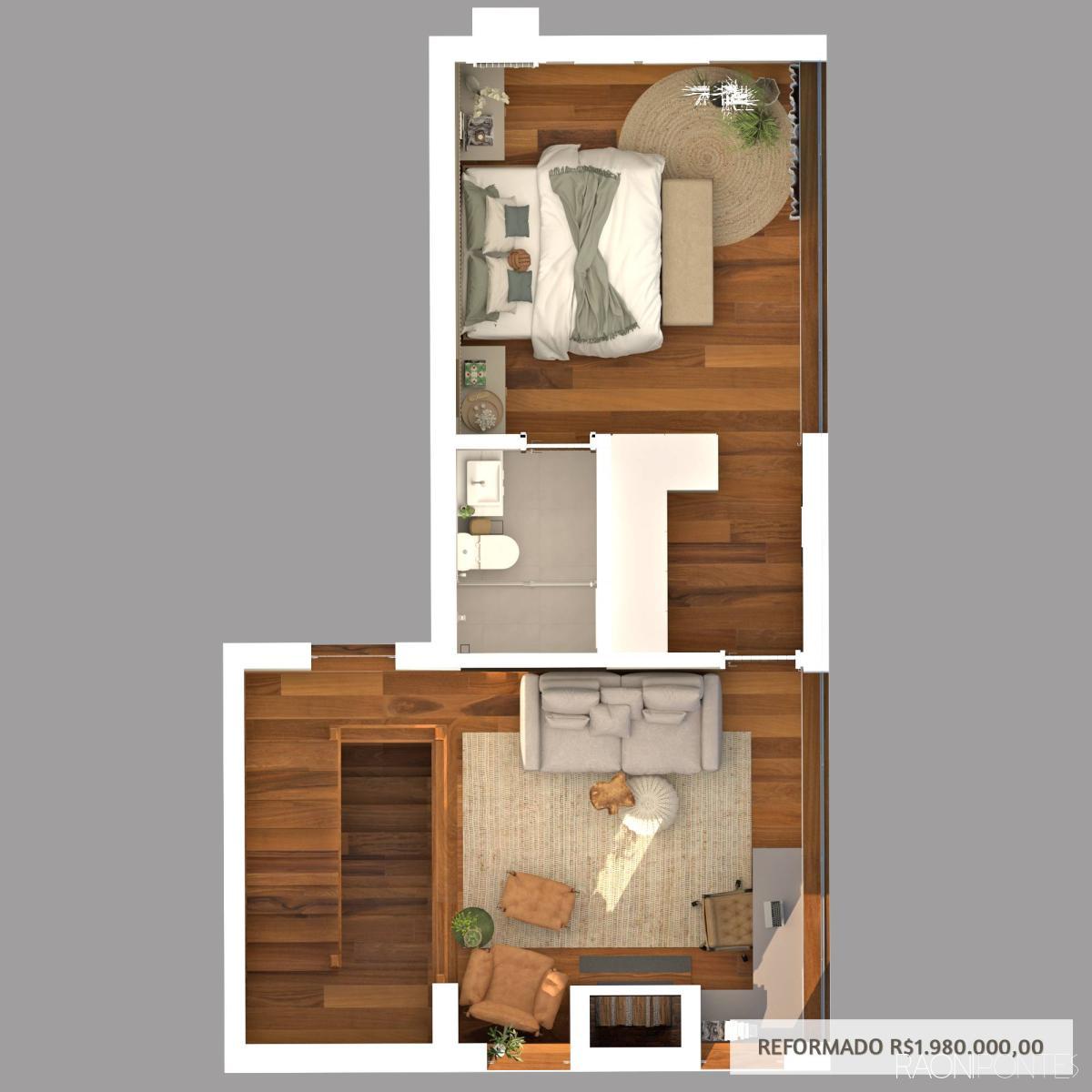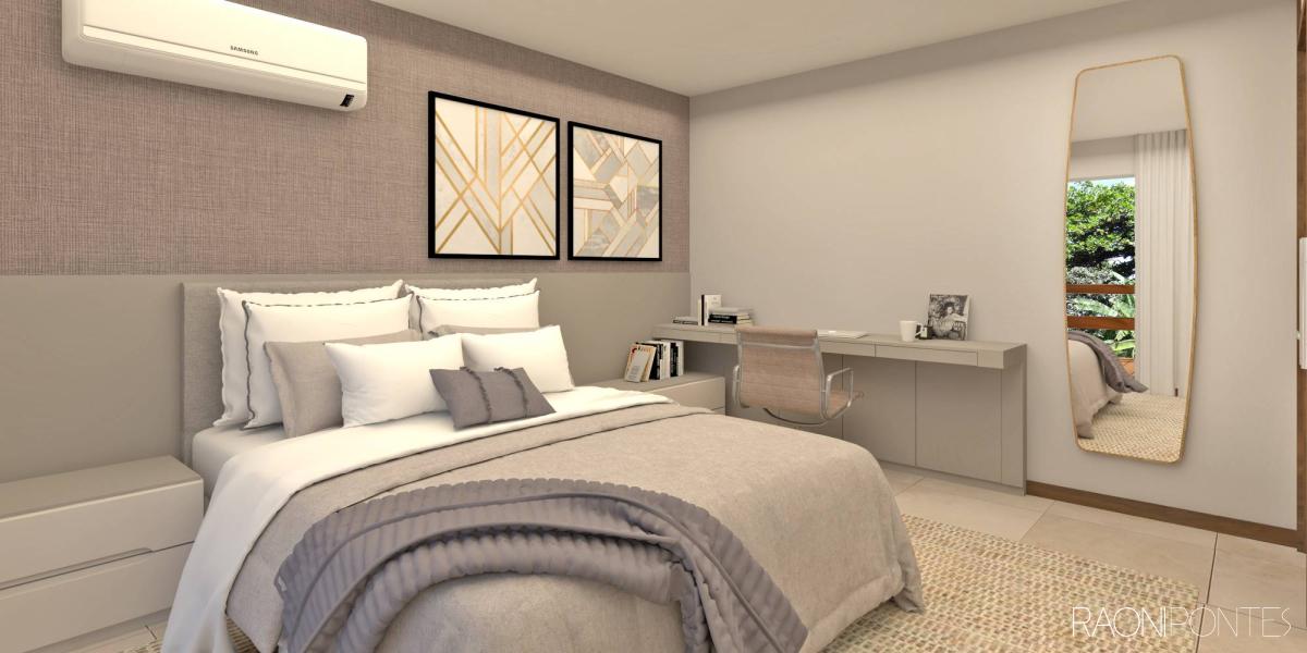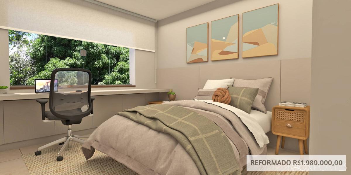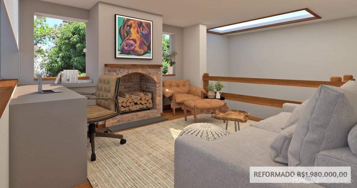 3º pavimento: 57m²; Sala privativa com lareira; Suíte máster bem arejada, ensolarada e vista para o verde.