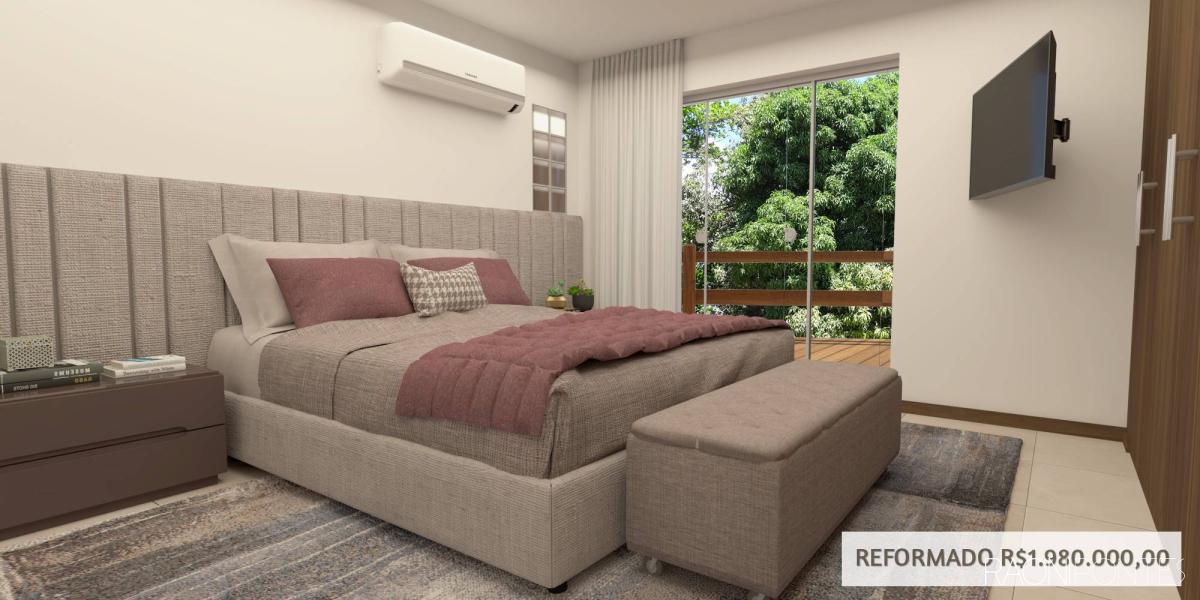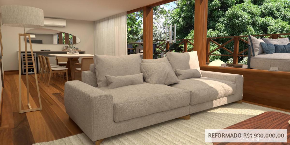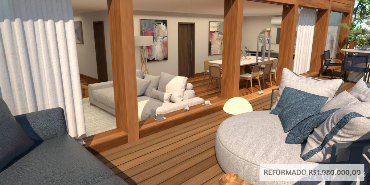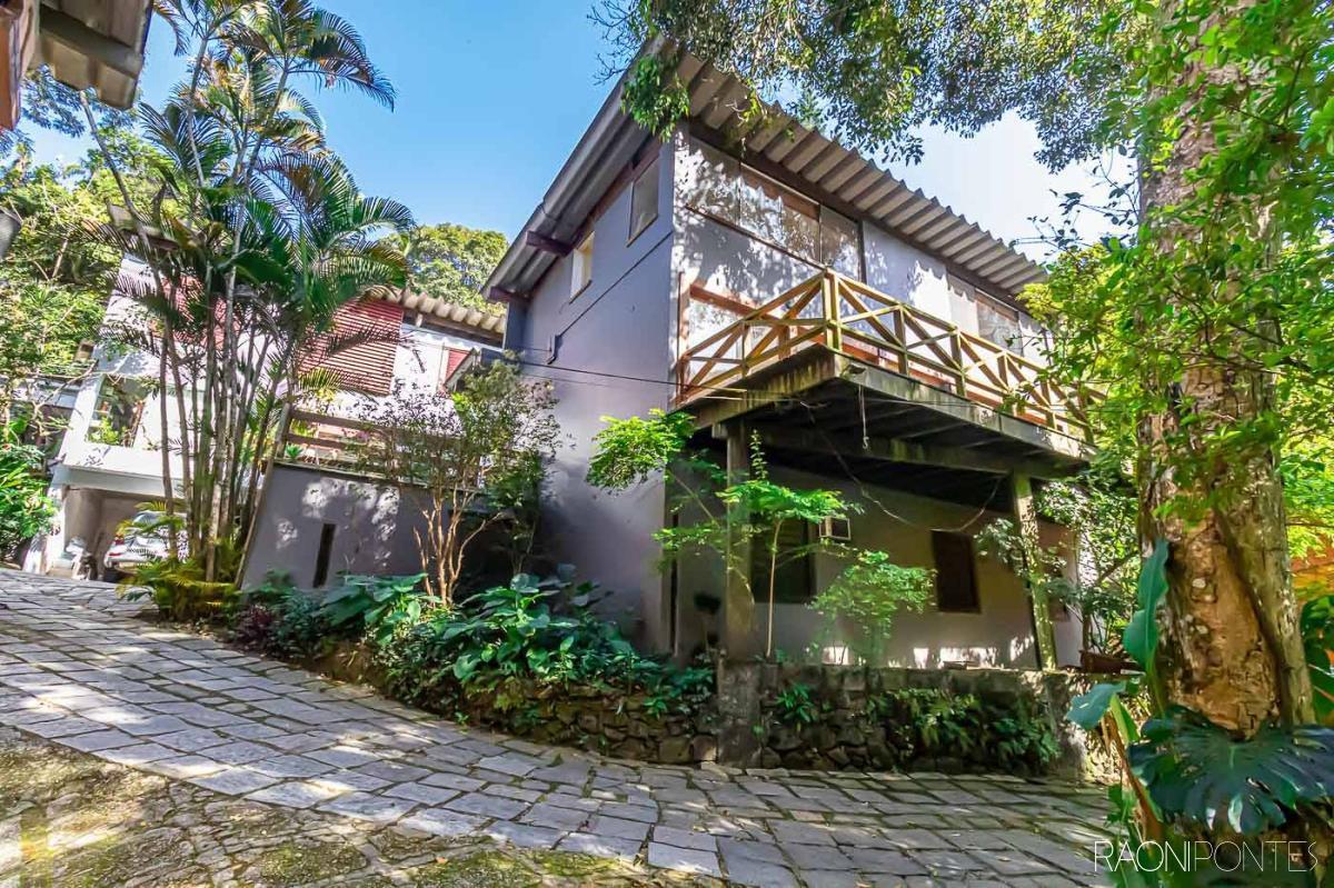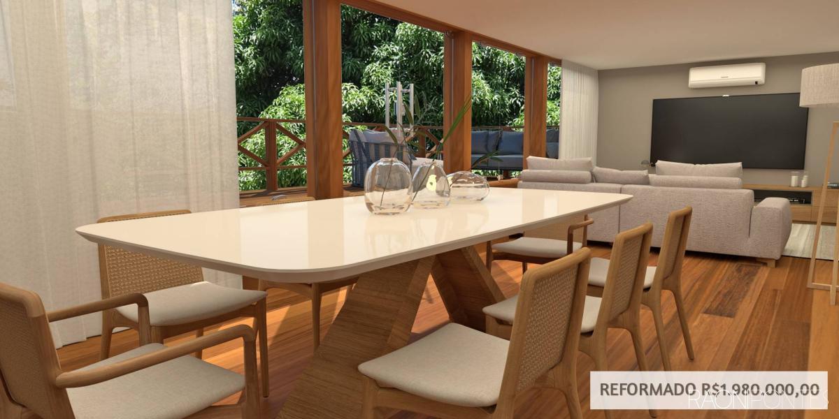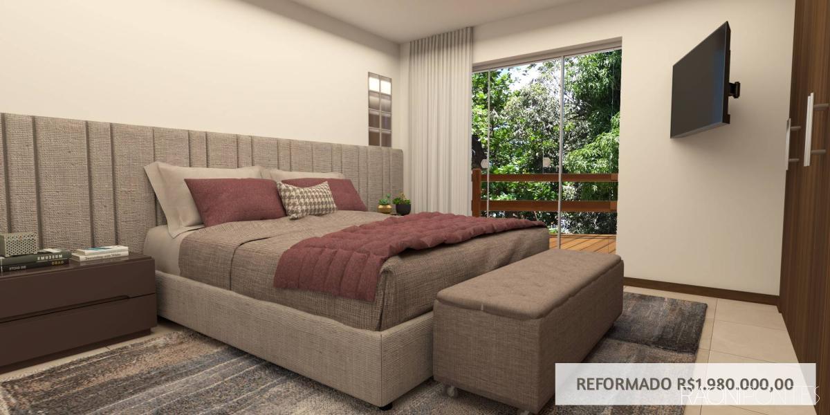 2º pavimento: 153m²; Entrada imponente com portas duplas, amplo hall de entrada; Salão com 40m² em 02 ambientes, acesso a deck de 26m², com ar bucólico, aconchegante e vista para mata atlântica; Lavabo; Cozinha com armários planejados, forno embutido e coifa; Área de serviço com dependência completa, espaço para despensa e área para guarda.