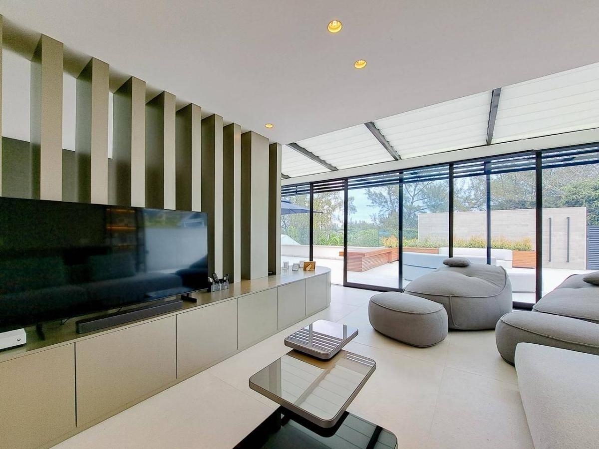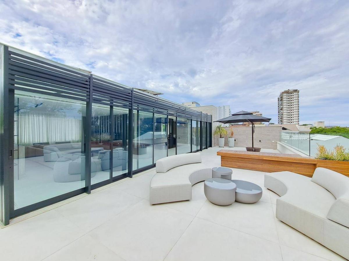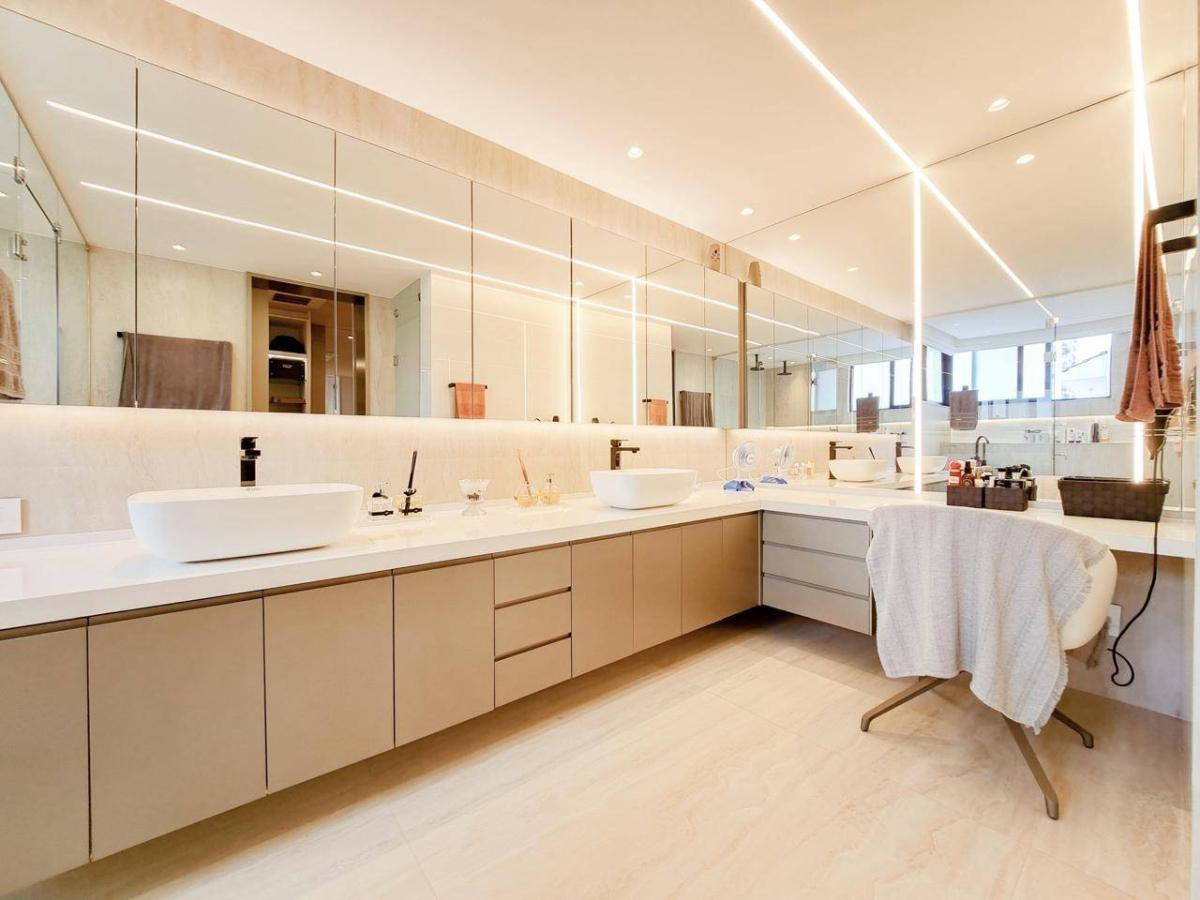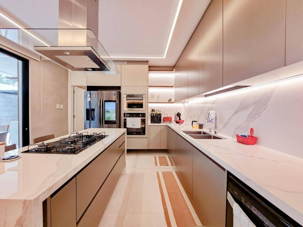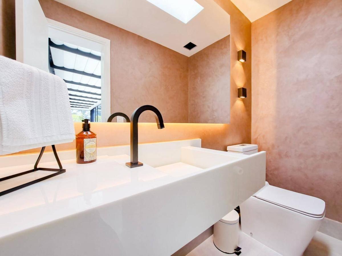 O imóvel tem 5 quartos, sendo 5 suítes, possui 7 banheiros, 3 salas e 4 vagas de garagem.