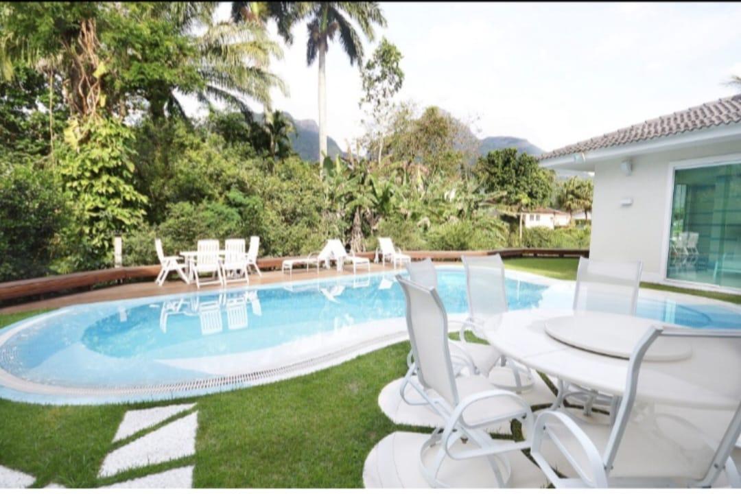Linda casa finamente mobiliada para locação em condomínio no Itanhangá, conta com 1300m² de área construída, subsolo e adega, boate, academia, casa de máquinas e canil. Projeto da Arquiteta Aurora Grey.