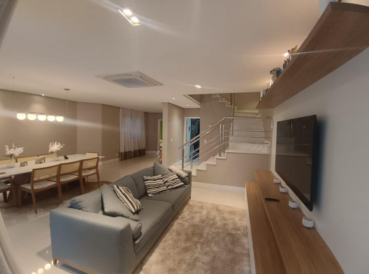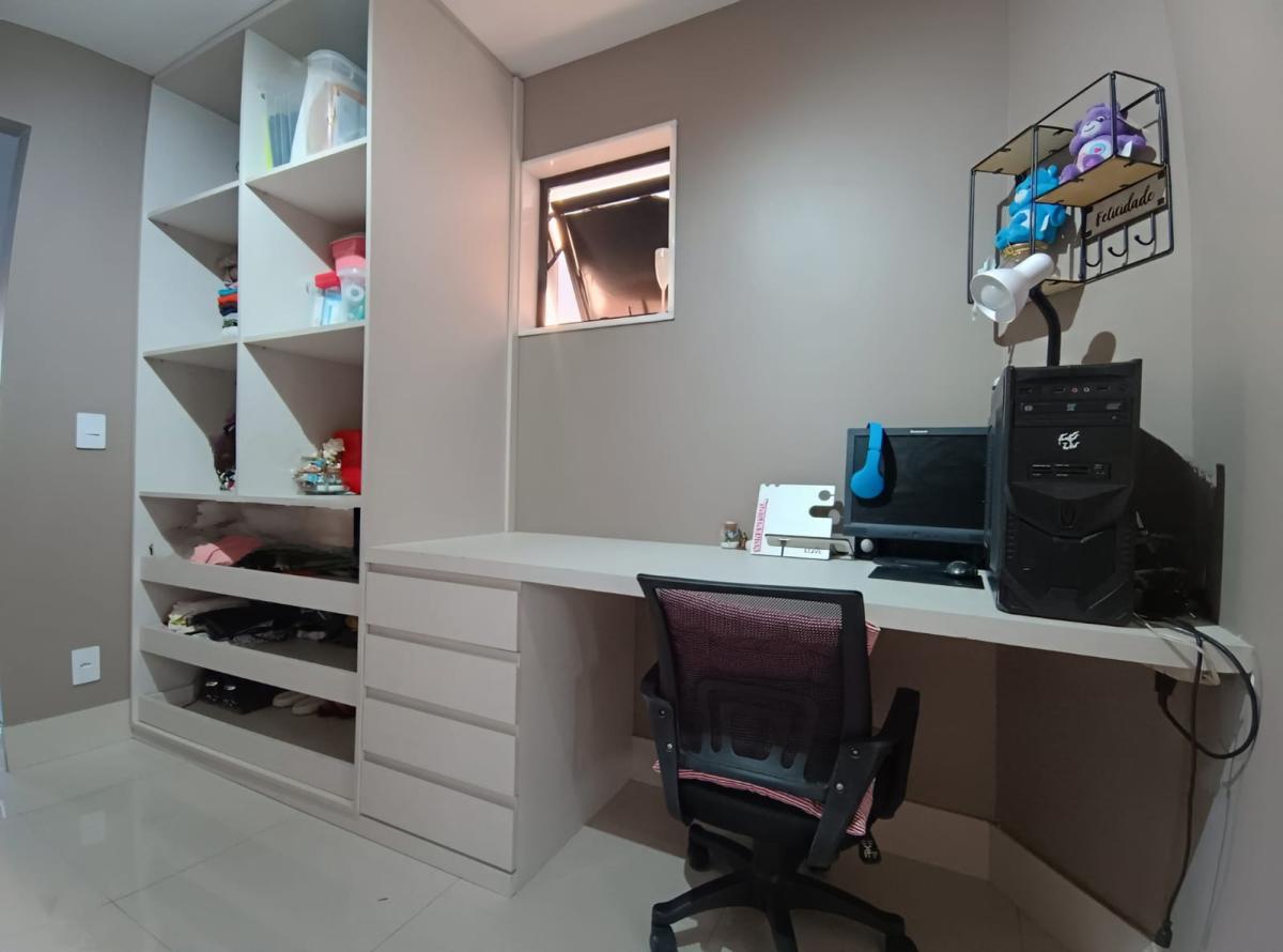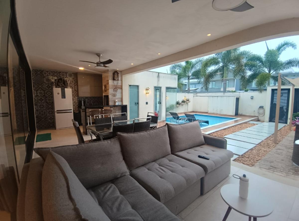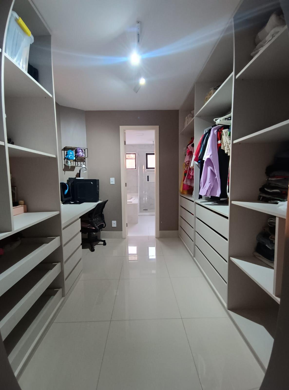 Em condomínio fechado, com total conforto e segurança, o imóvel possui 500m² com 5 quartos, sendo 3 suítes bem amplas, todas com móveis planejados e mobília completa. A suíte principal possui closet bem distribuído.