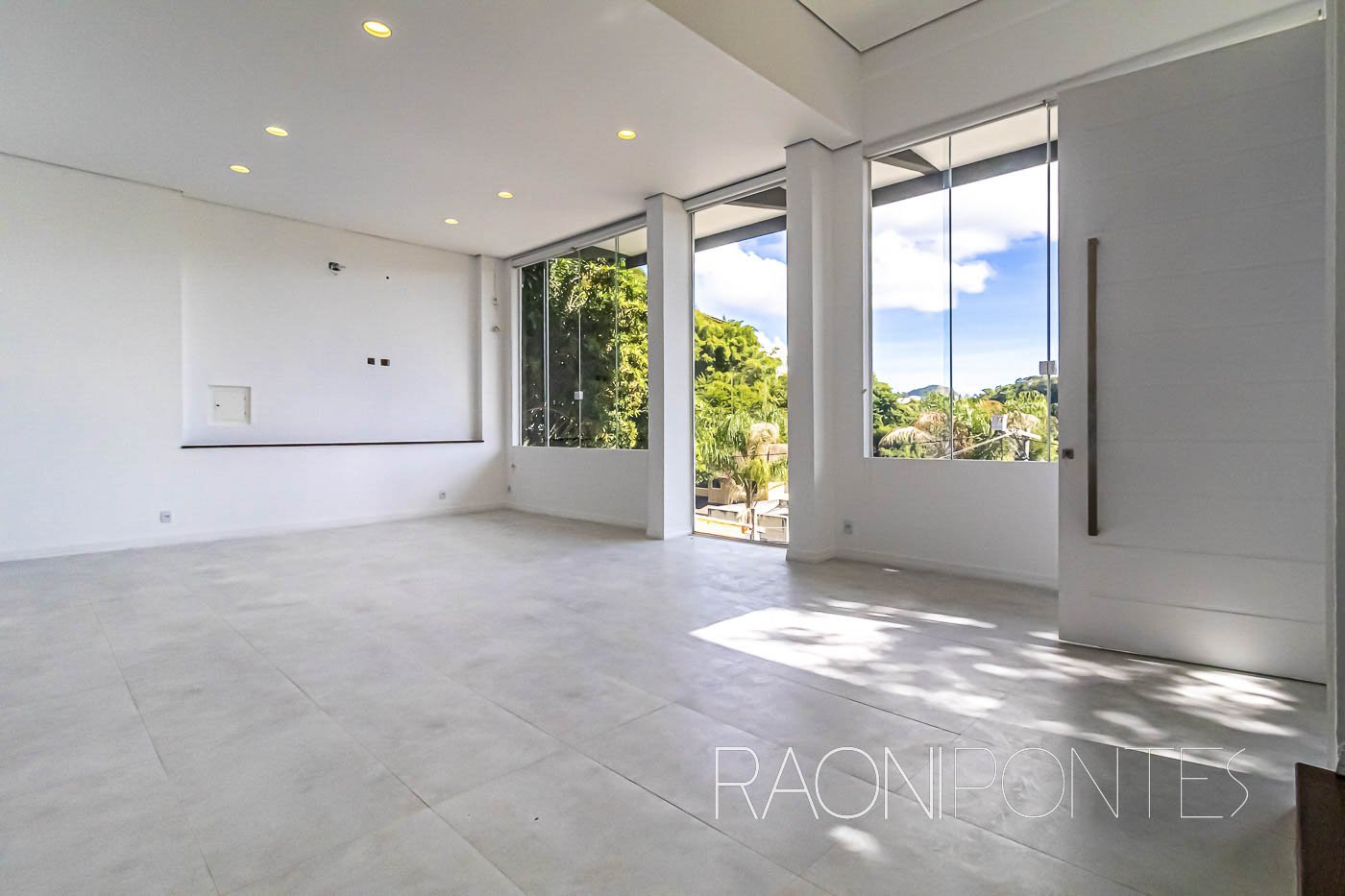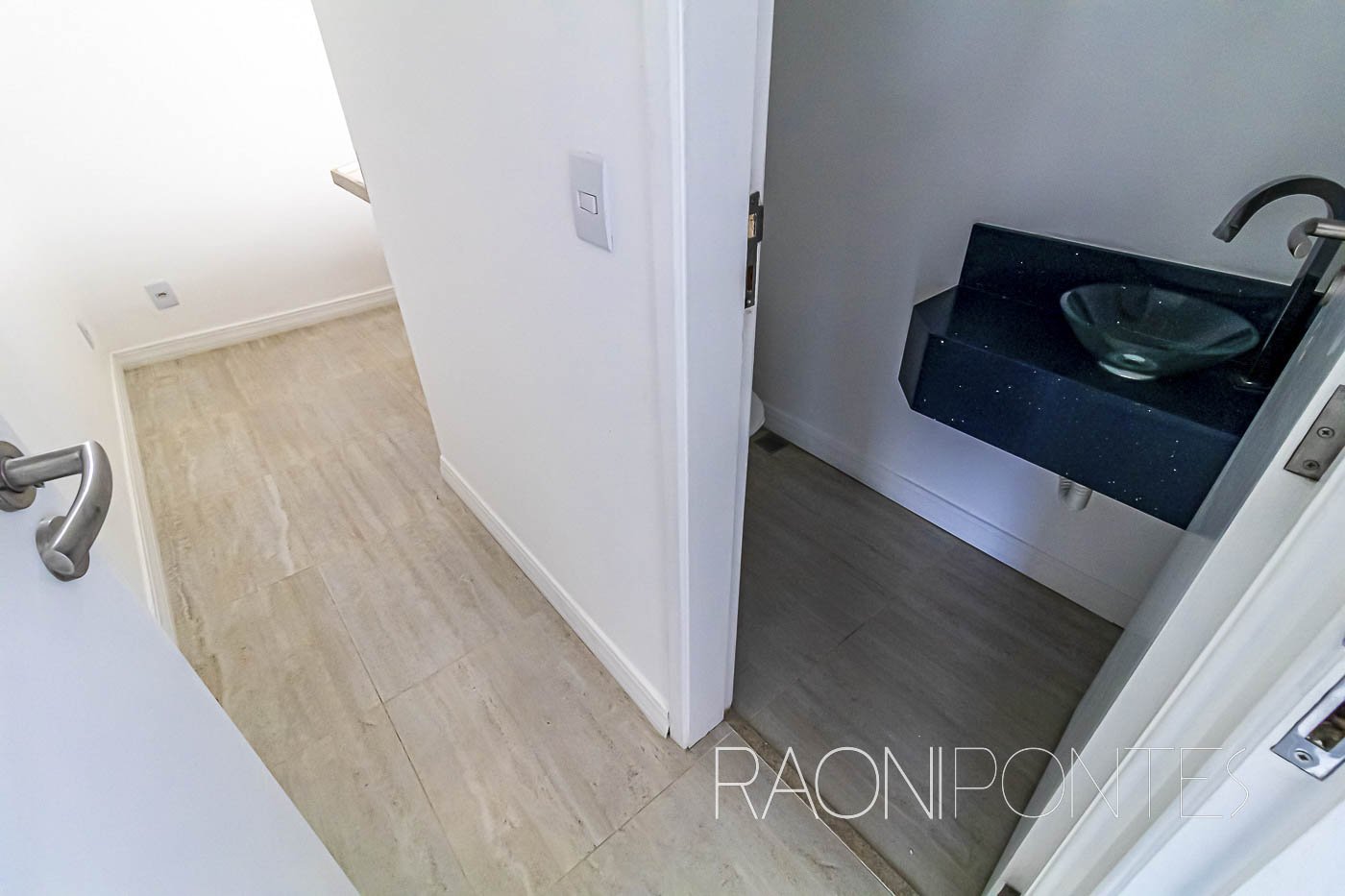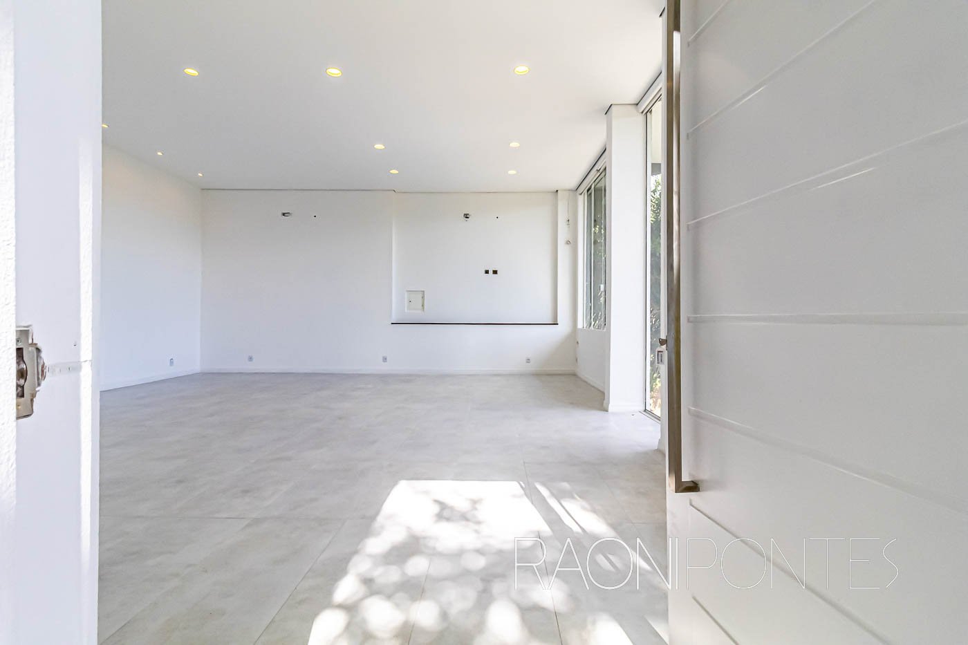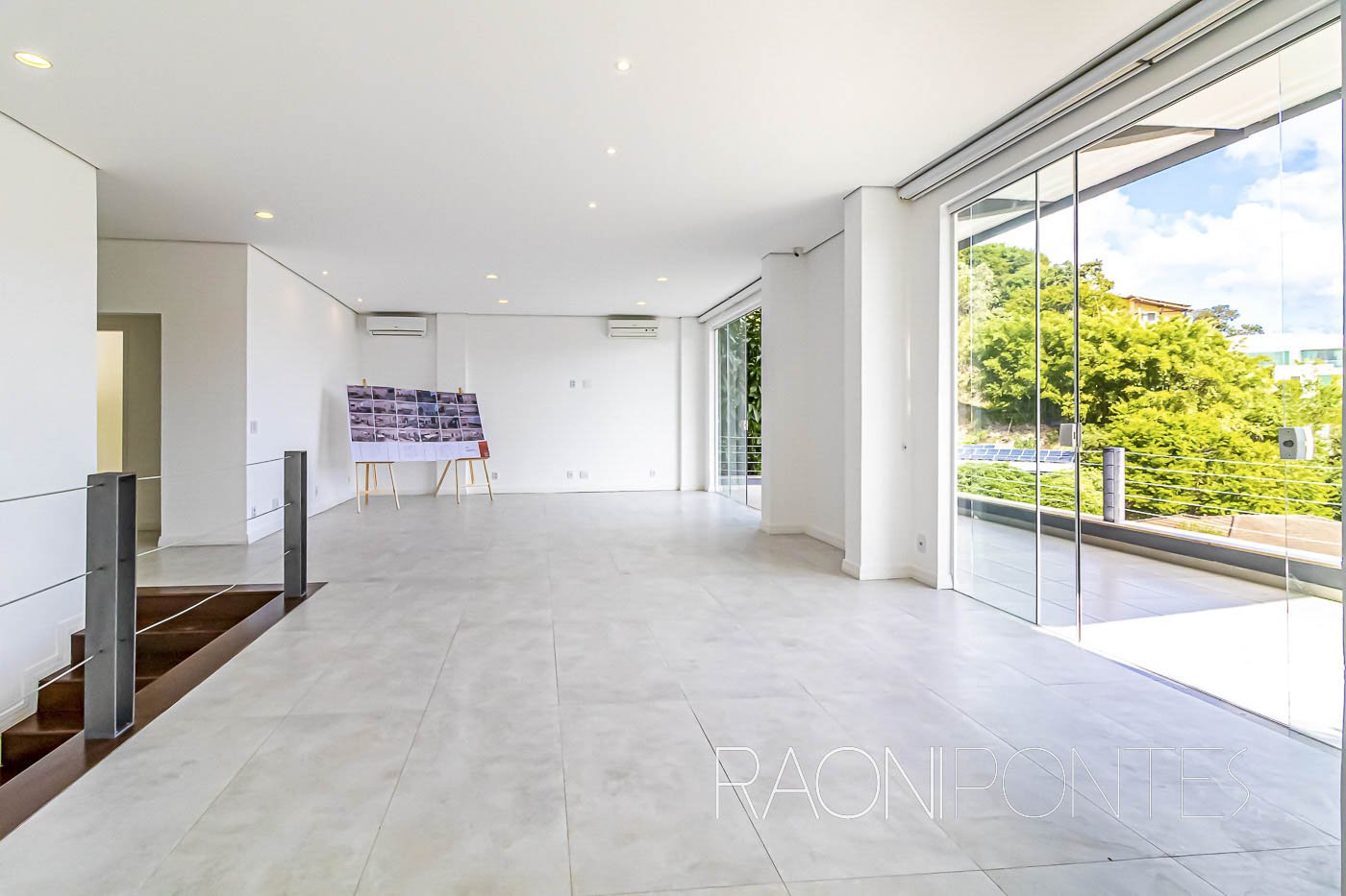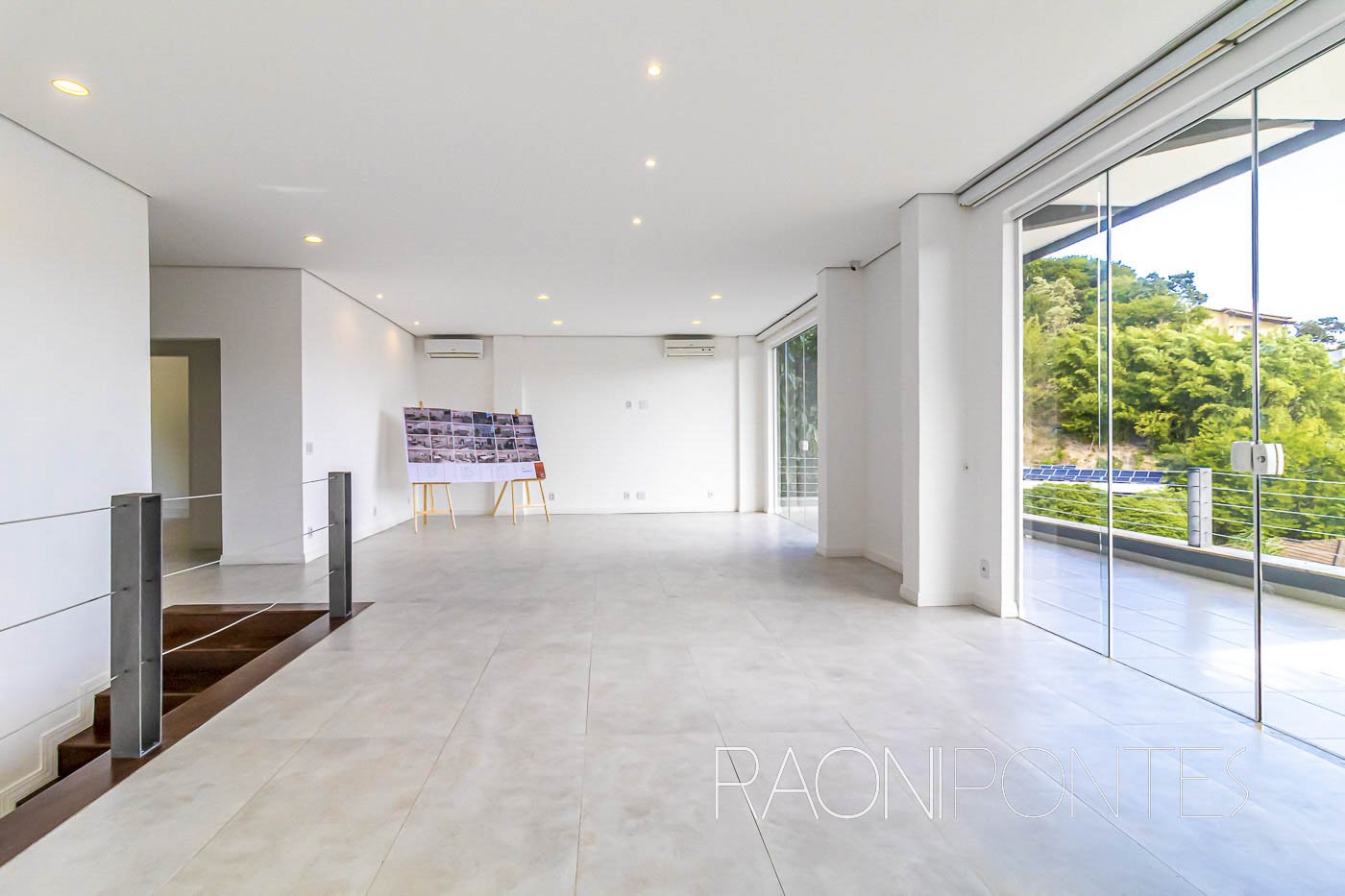 1º pavimento: 84,3m²; Amplo living com mais de 70m², pé direito alto (quase duplo) com frente envidraçada e vista para jardim; área de depósito e lavabo; na área externa, garagem com banheiro completo totalizando 32m².