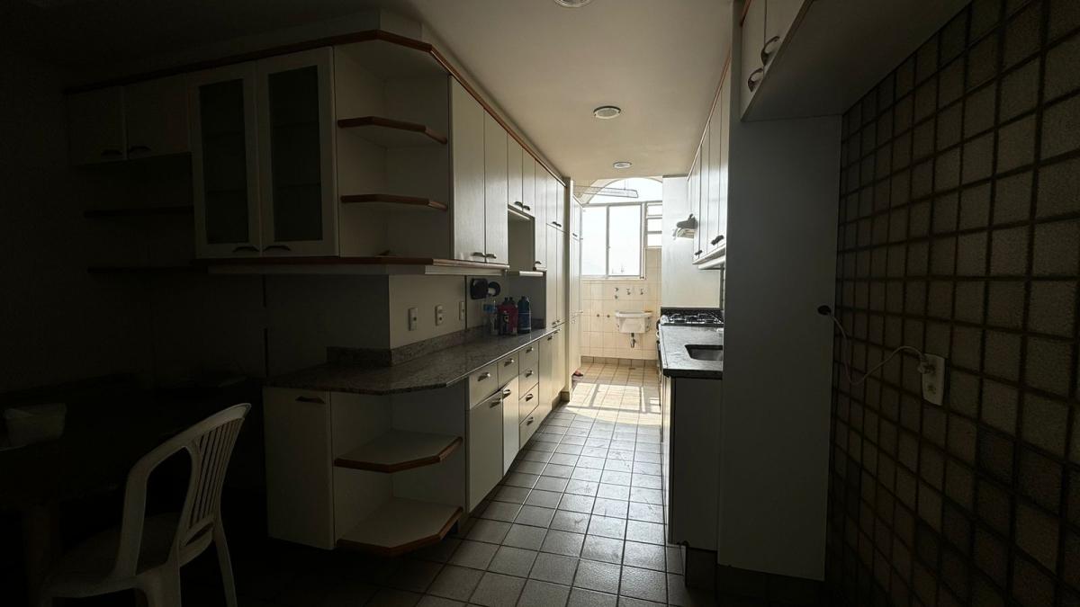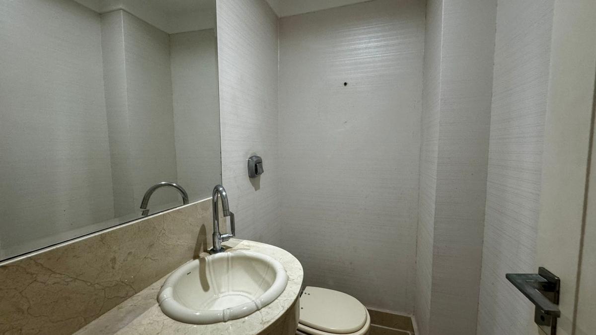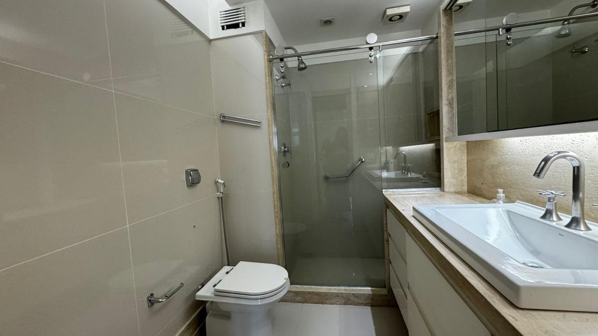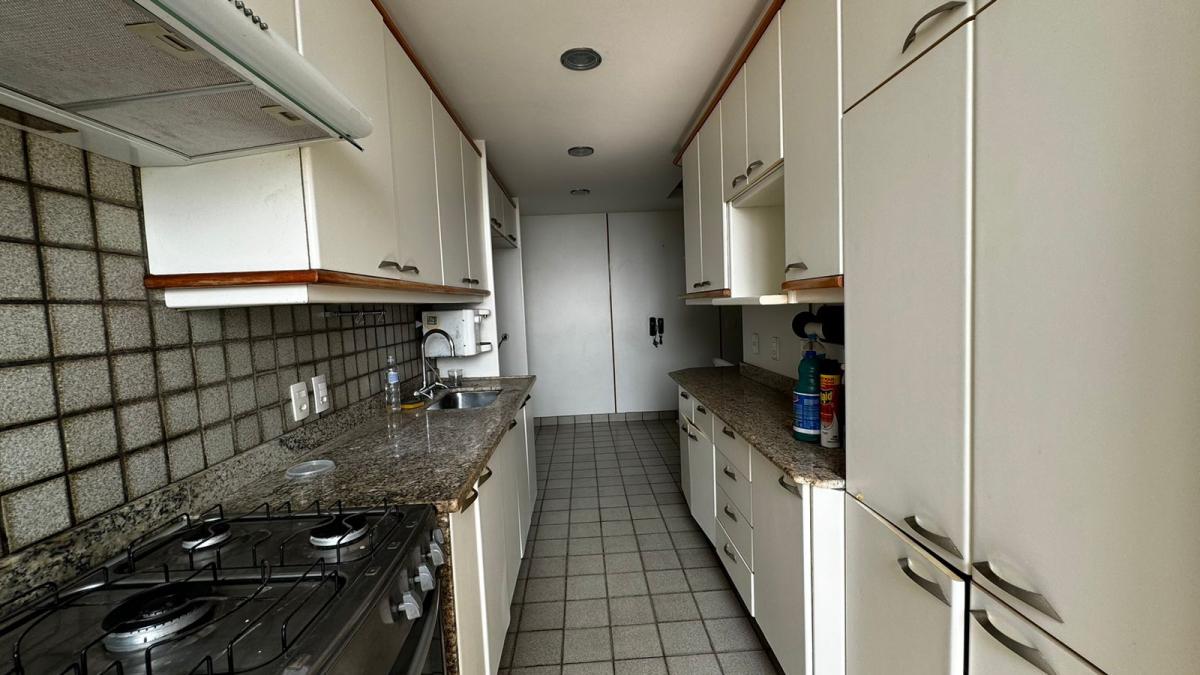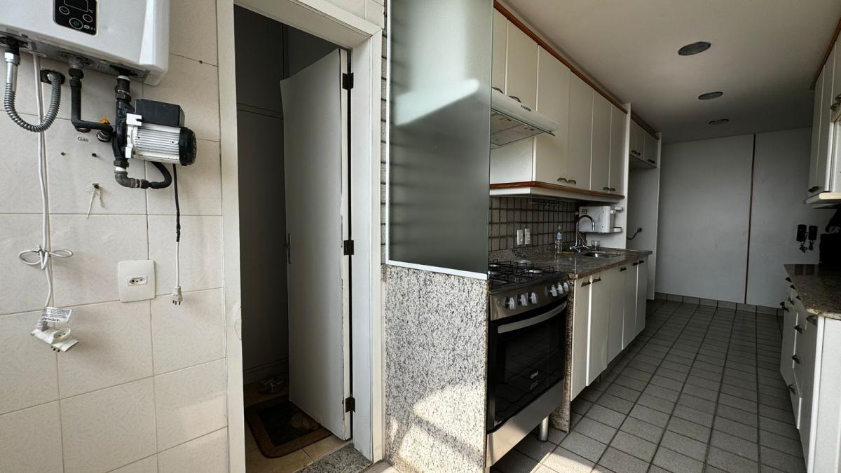 2 lavabos, cozinha com dependência de empregada completa, armários planejados, sala em dois ambientes, varanda bem ampla e área externa com churrasqueira.